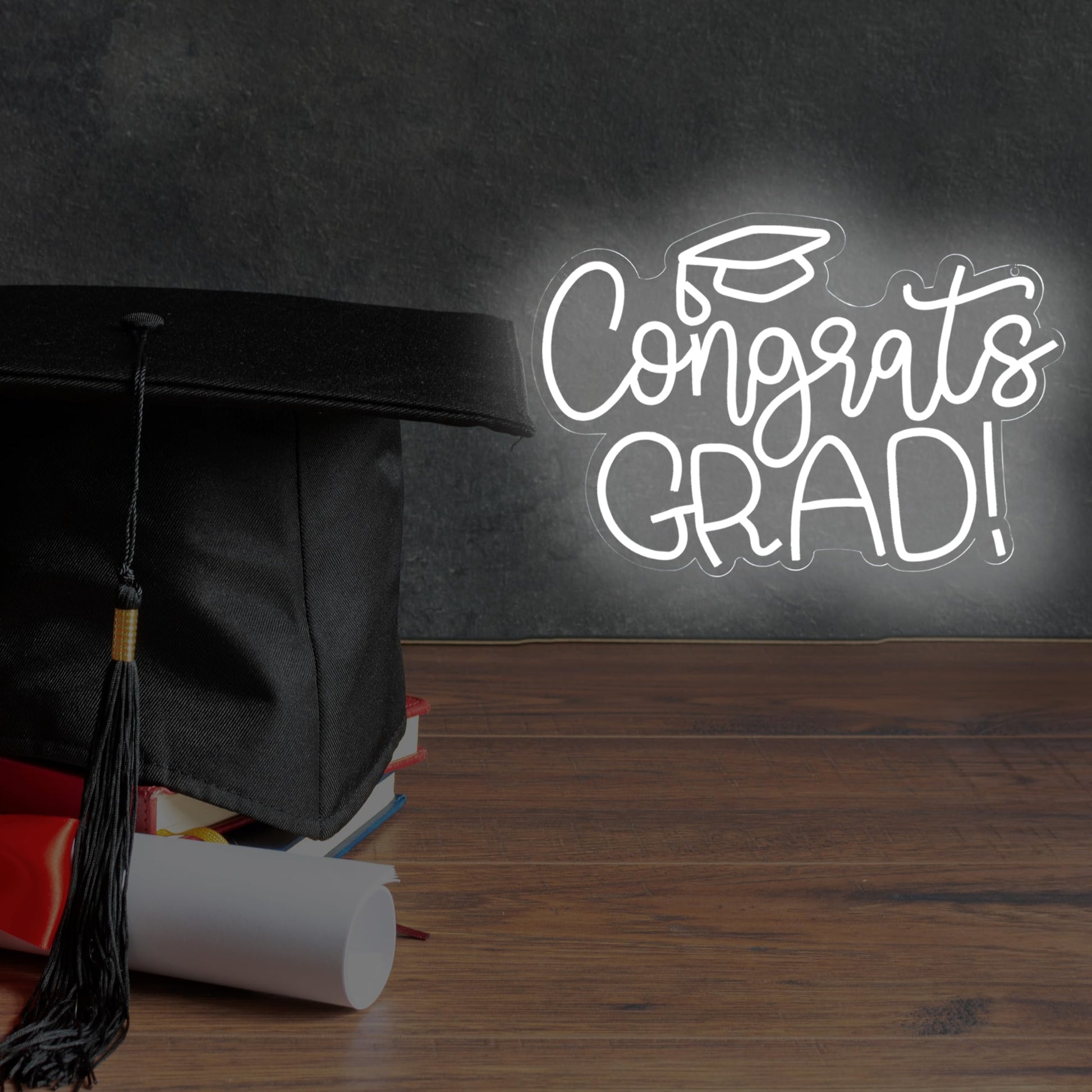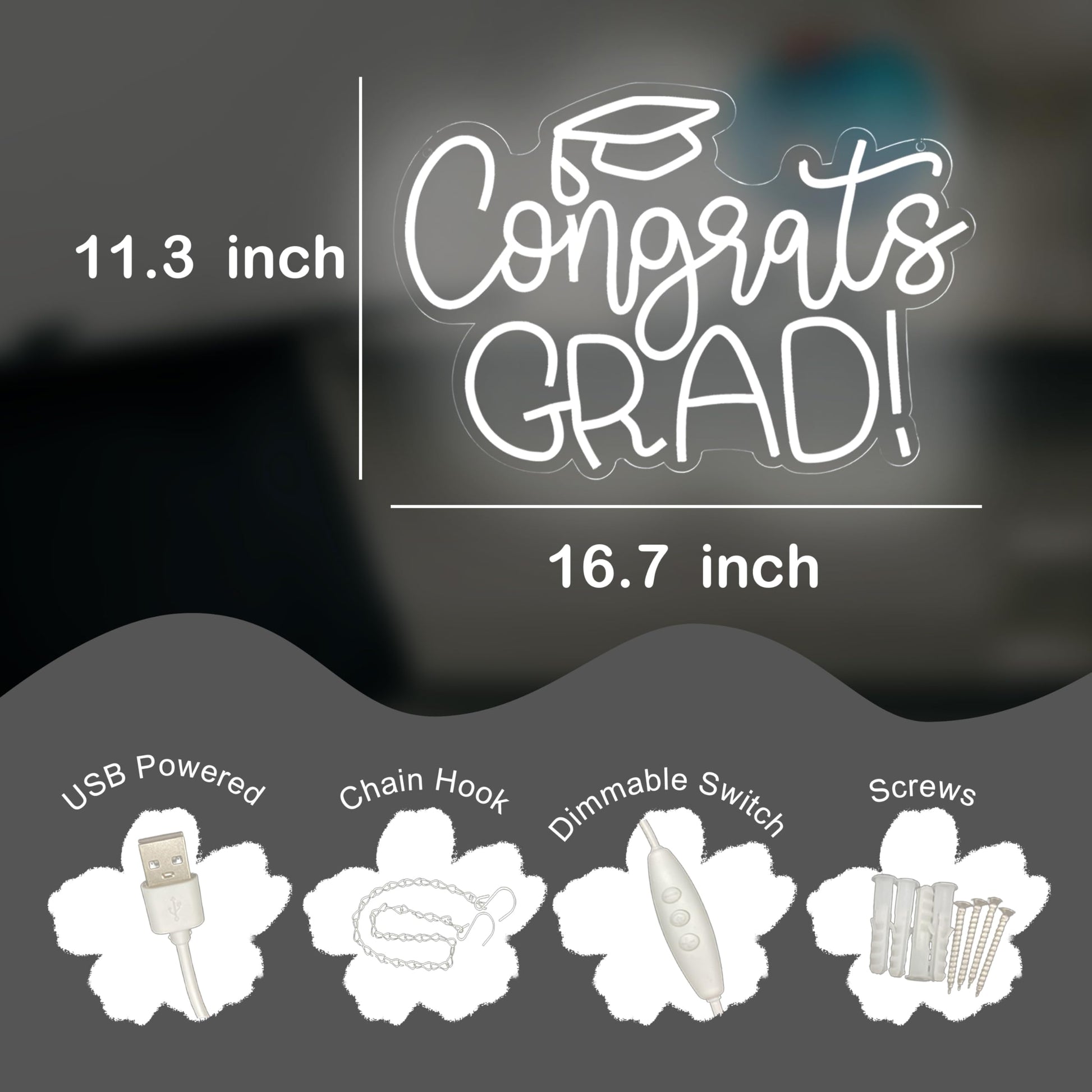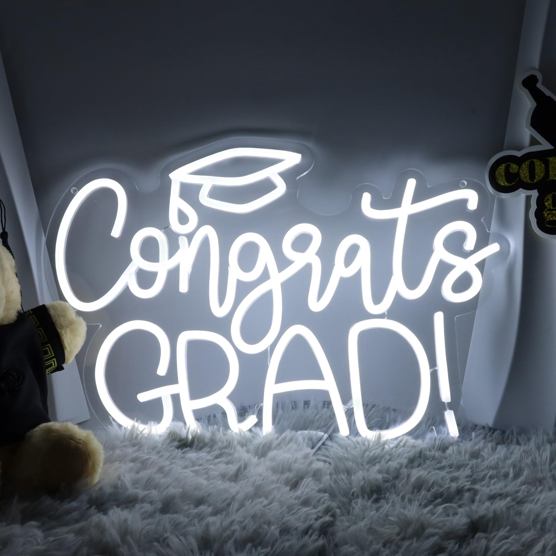 - Vibrant Graduation Decorations: Celebrate your graduation in style with this Congrats Grad Neon Sign! Measuring 11.3 * 16.7 inches and featuring white lighting, this acrylic board LED neon sign will be the perfect addition to your graduation party backdrop