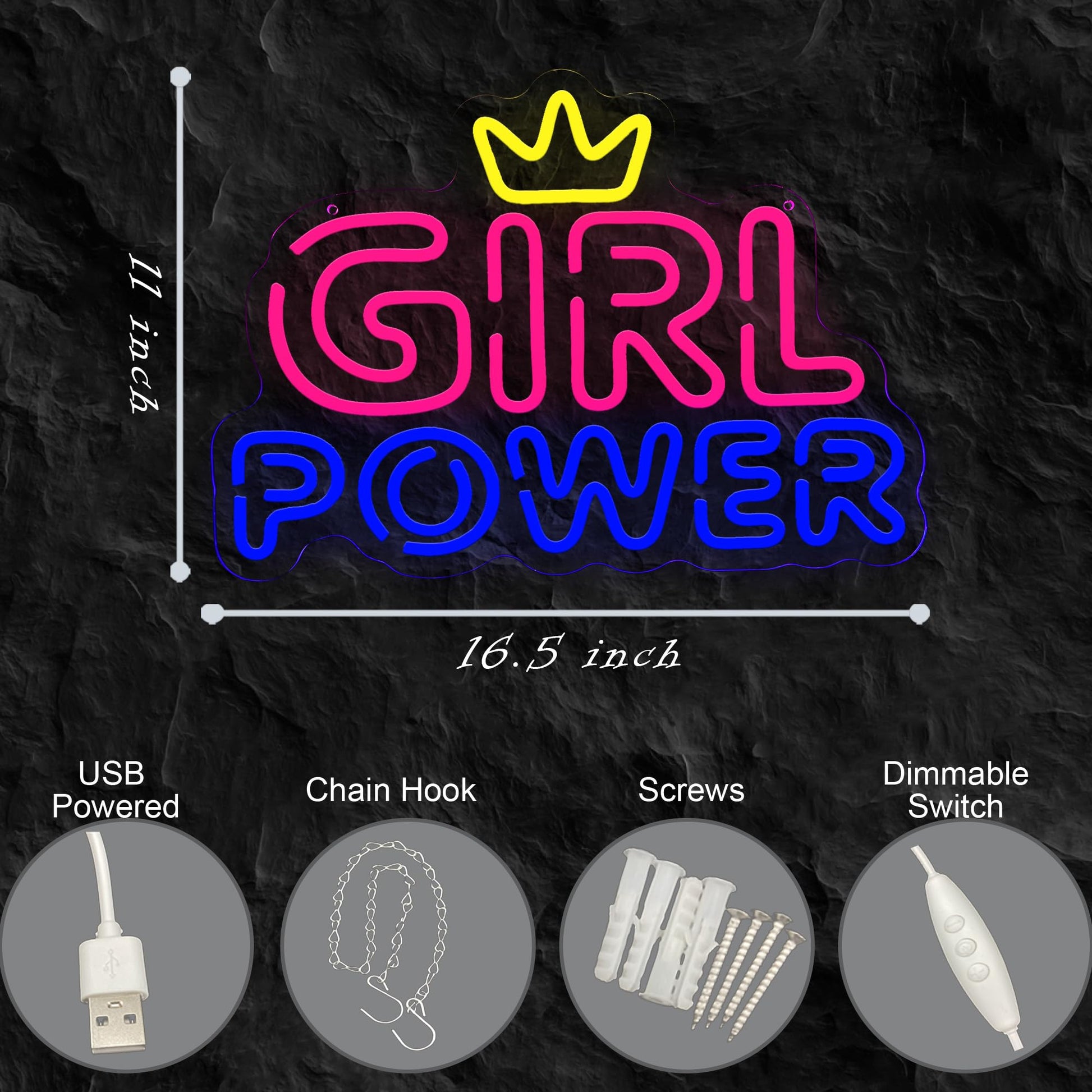 - [Easy Installation & Various Occasions] Girls Girls Girls neon light sign is handcrafted from original design with pre-drilled holes and mounting kit sets for easy installation. USB operated neon wall sign can be powered with power bank, laptop and portable for different occasions. It’s perfect for bedroom, party, game room, bar, man cave, wedding