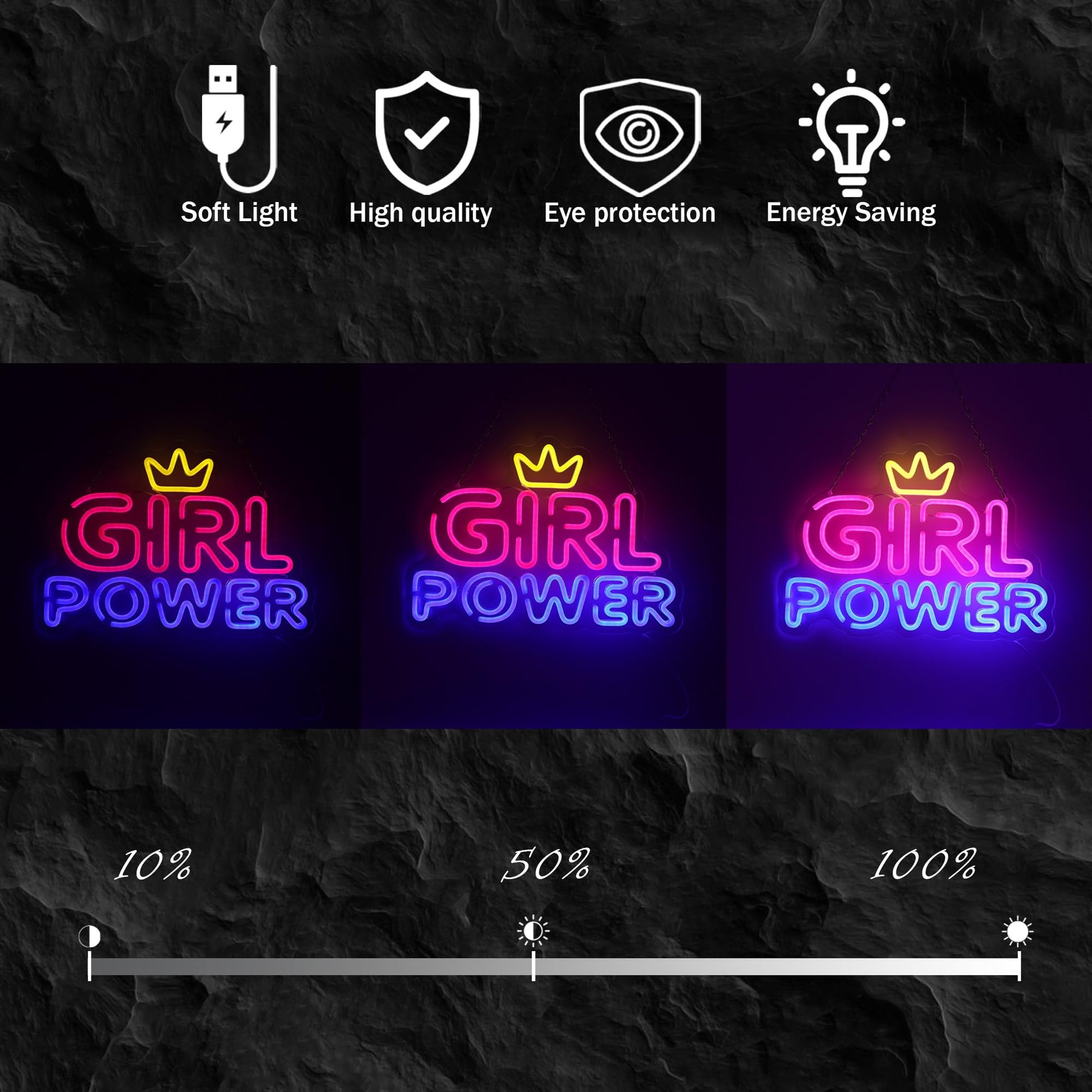 - [Energy Saving & Durable] Made from high-quality material. Neon sign is energy-efficient and economical. Lower energy consumption than glass neon. All LED neon signs with dimmable switch ON/OFF power cord and can last over 50000 hours