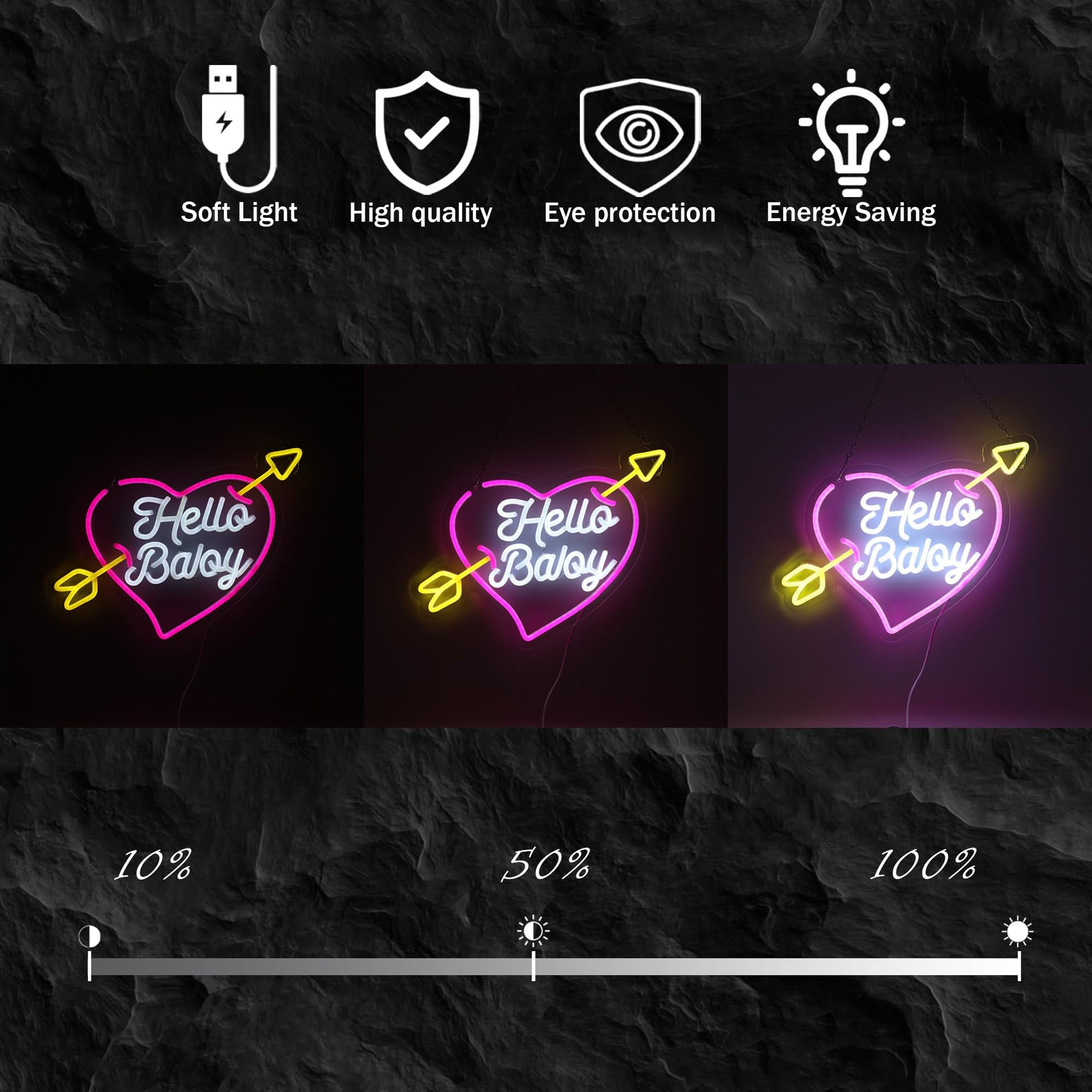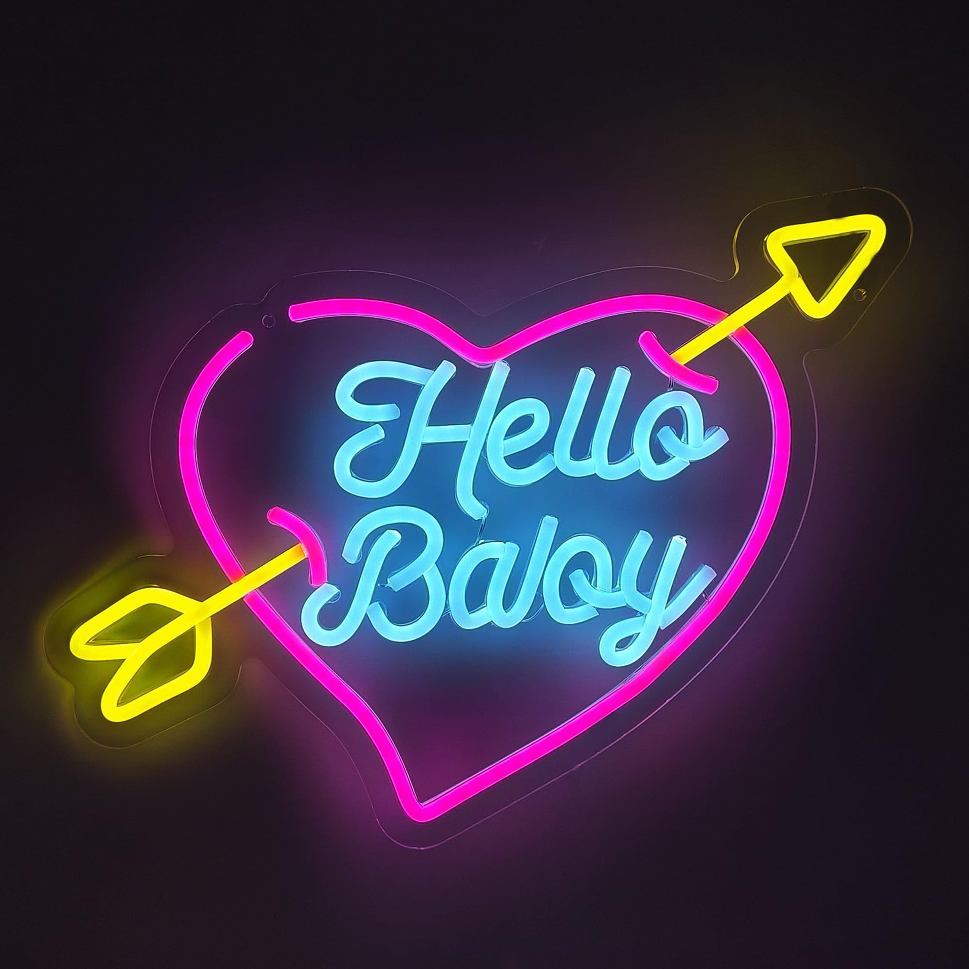 Hello Baby Neon Sign Oh Baby Sign for Backdrop for Baby Shower, Gender Reveal, Baby Room, Birthday Party Decorations
