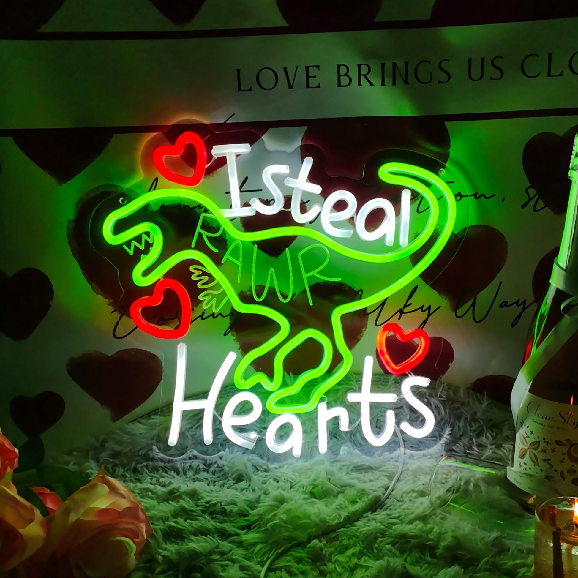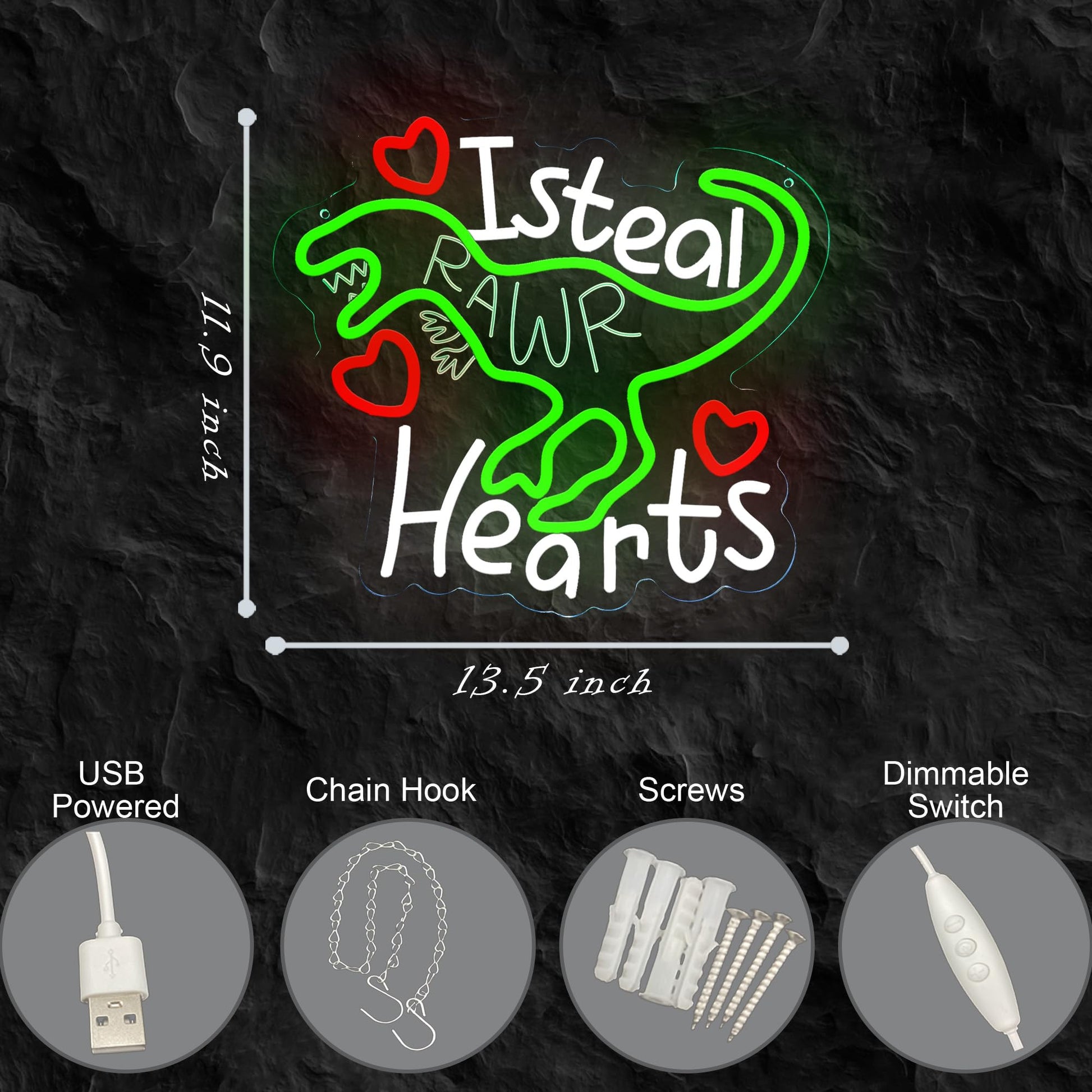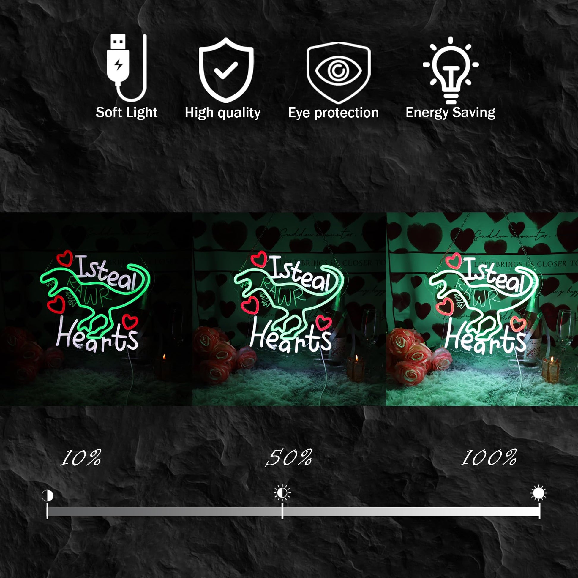 - [Perfect Valentine's Day Decor] Add a romantic touch to any room with this Dinosaur neon sign. It can replace the desk lamp or nightlight, and is a great Valentine's Day gift for your loved one.