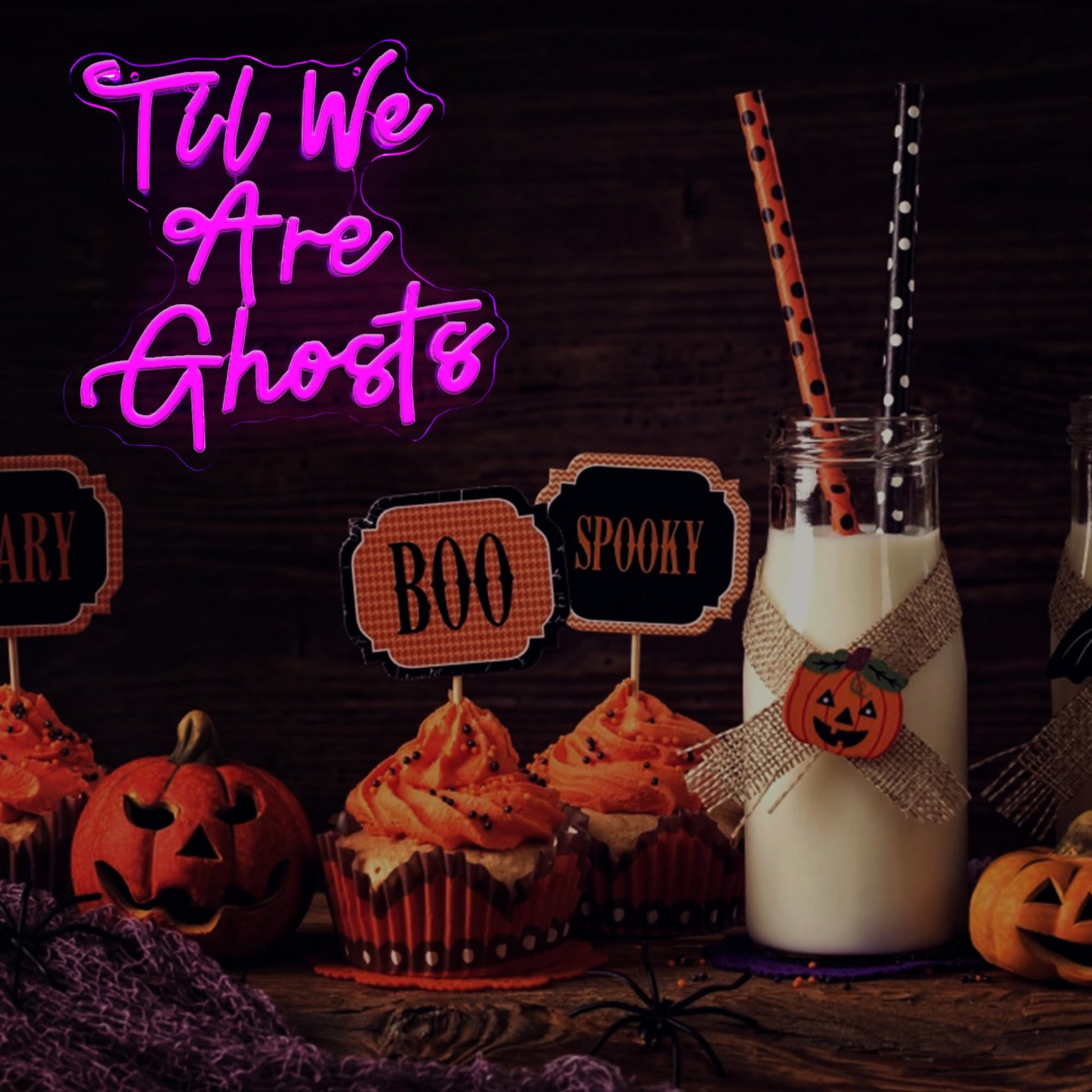 Til We Are Ghosts Neon Sign for Halloween Party Decor, Coffin Neon Sign Dimmable LED Light for Gothic Wedding Ceremony, Valentine's Day Gifts